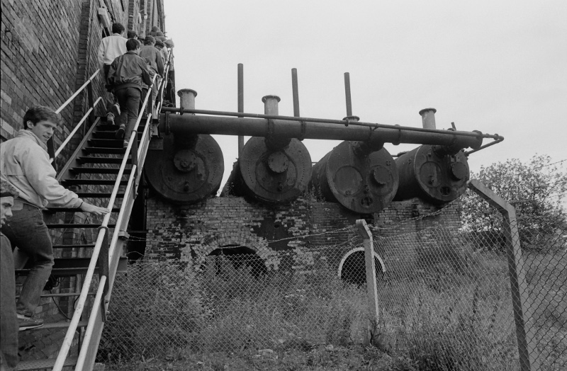 A bank of old boilers used as accumulators at Chatterley Whitfield colliery in 1986.