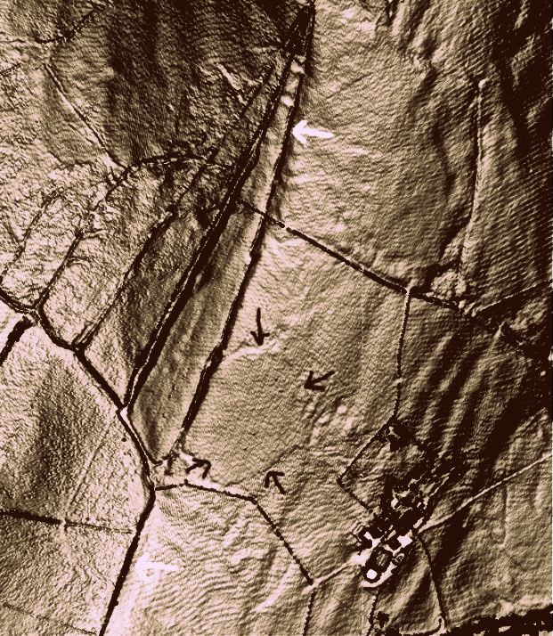 Drainage feature at Height house Farm (LiDAR copyright Environment Agency 2013 All rights reserved)