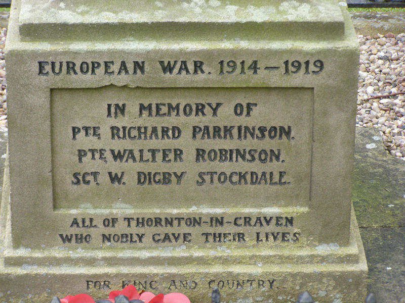 Thornton in Craven War Memorial. Side 1.