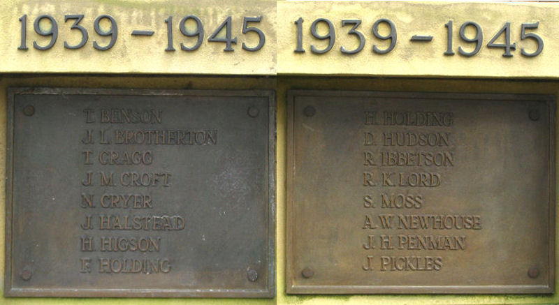 Earby War Memorial. 1939-45 Panels