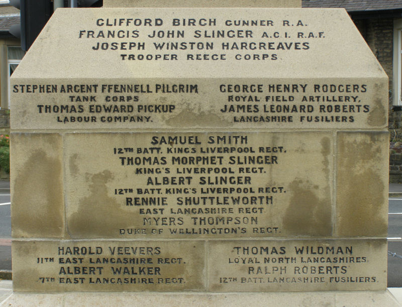 Foulridge War Memorial. Inscription Panel 2.