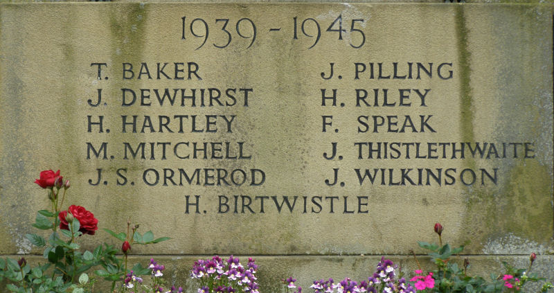 Trawden War Memorial. 1939-45 panel.