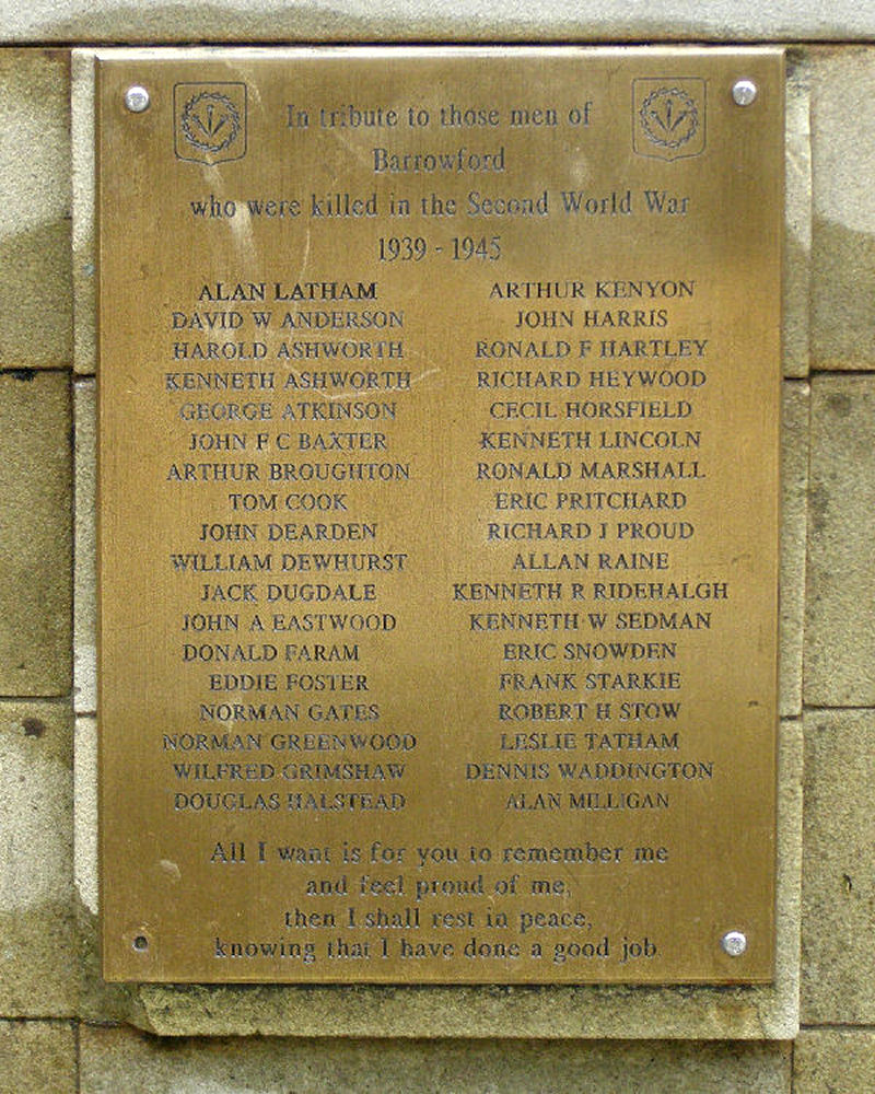 Barrowford War Memorial. 1939-45 panel.