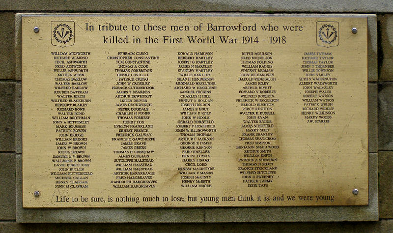 Barrowford War Memorial. 1914-18. panel.