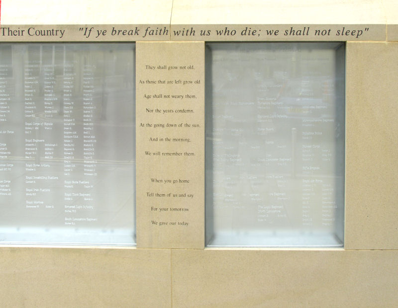 Nelson War Memorial. Sample panel showing names of fallen.