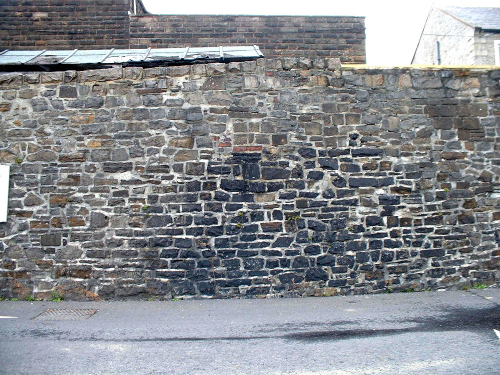 The stain on the wall in the Co-op car park dating from the time when treacle was exported from Barlick.