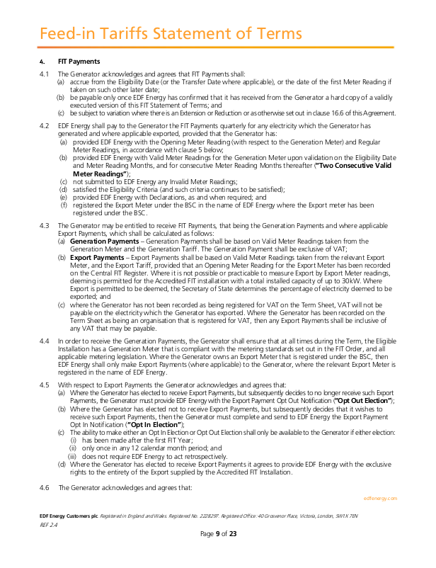 Typical page of FIT terms