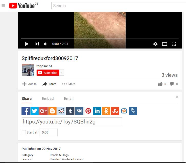 YouTube Share Tab drop down