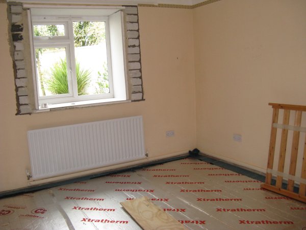 PIR insulation boards laid on concrete floor