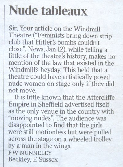 Letter from The Times, 13 Jan 2018 - Nude tableaux