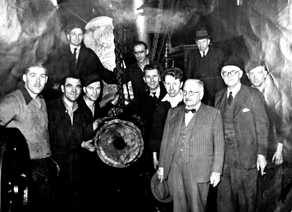 The broken fly shaft at Victoria Mill in 1954.