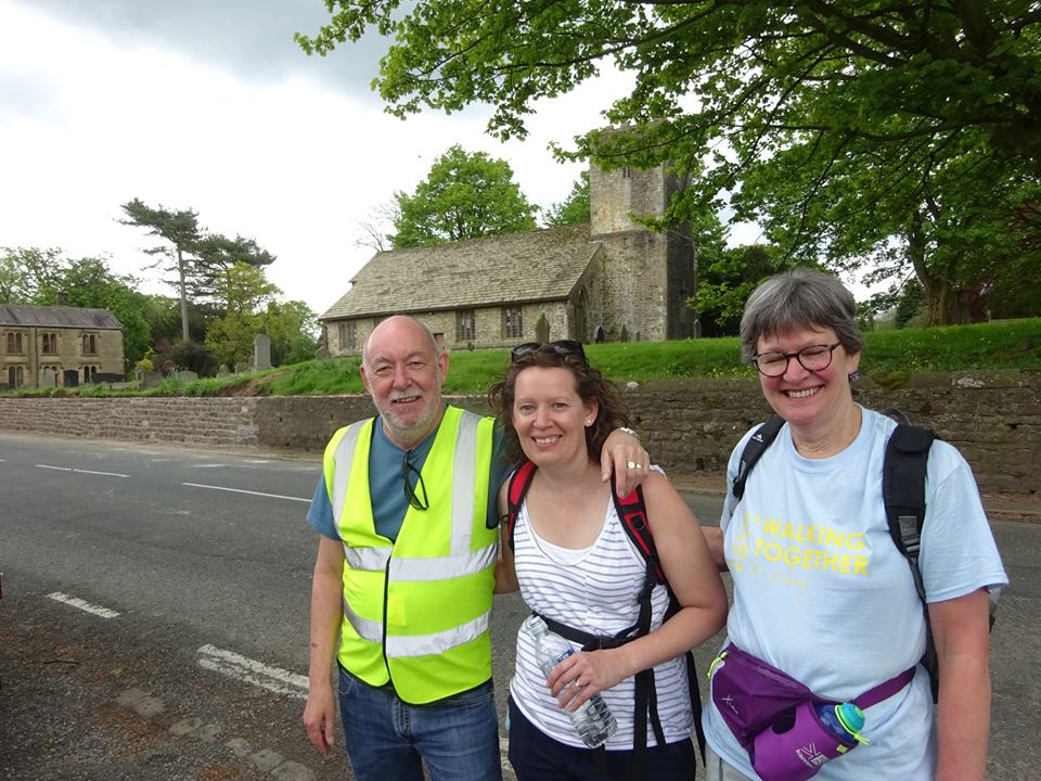 Marshalling mode and Sally and Carla at Bracewell on the last leg of the walk