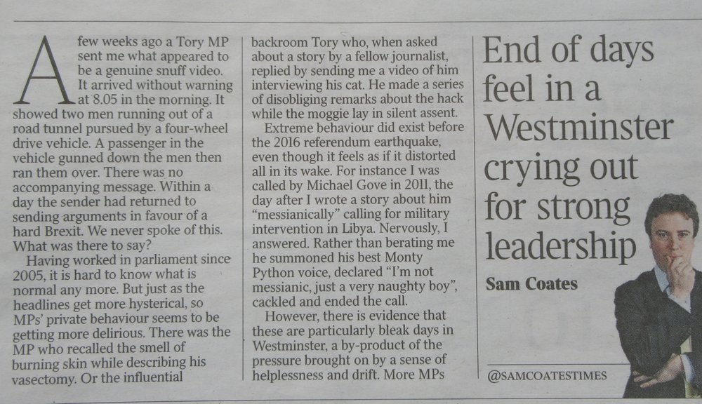 Article from The Times deputy political editor, 11th Aug 2018. Part 1.