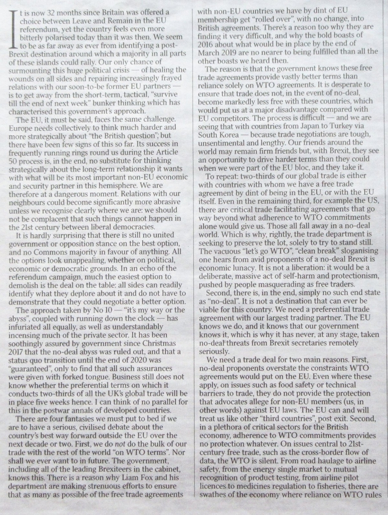 Brexit article, Part 1, from The Times, 23 Feb 2019. Part 1