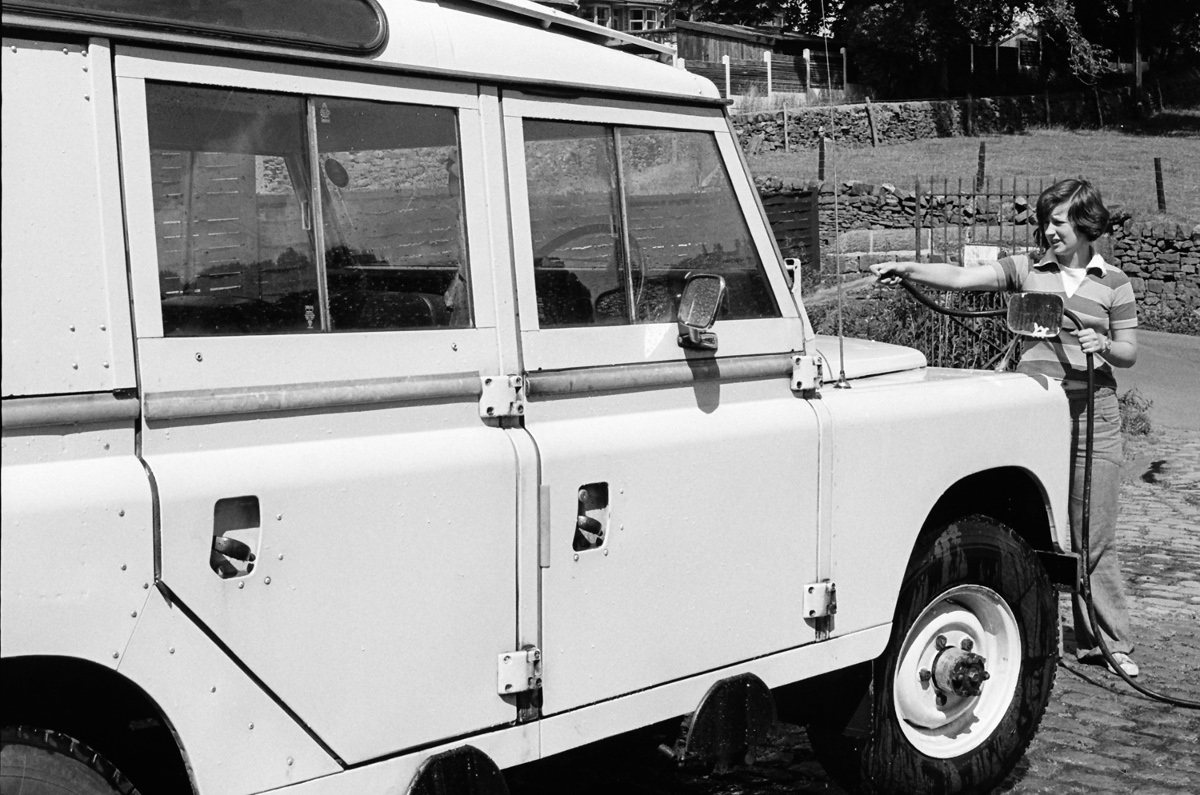 Margaret washing the new Safari