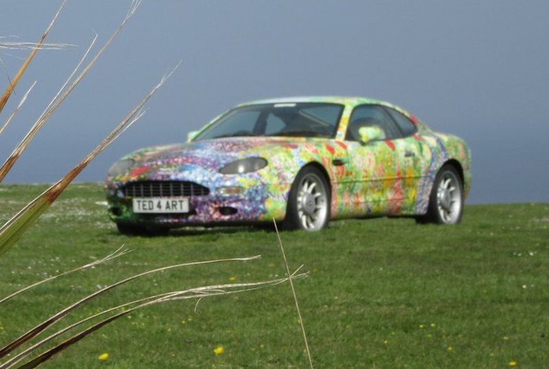 Car on lawn at the hotel in Tintagel