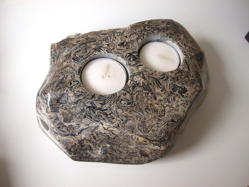 Tea light holder carved and polished from Purbeck cinderbed limestone
