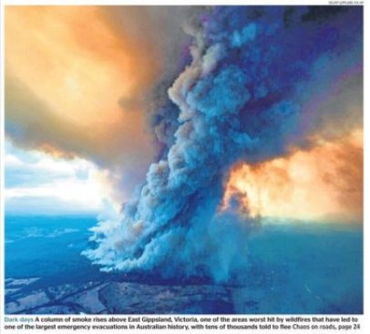 East Gippsland, Australia, 03/01/20 showing smoke billowing into the sky