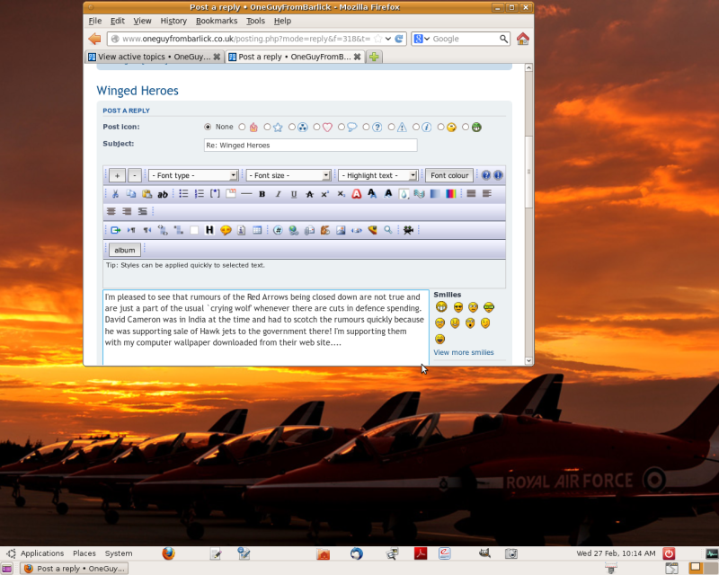 Red Arrows photo from their web site used as wallpaper on my PC