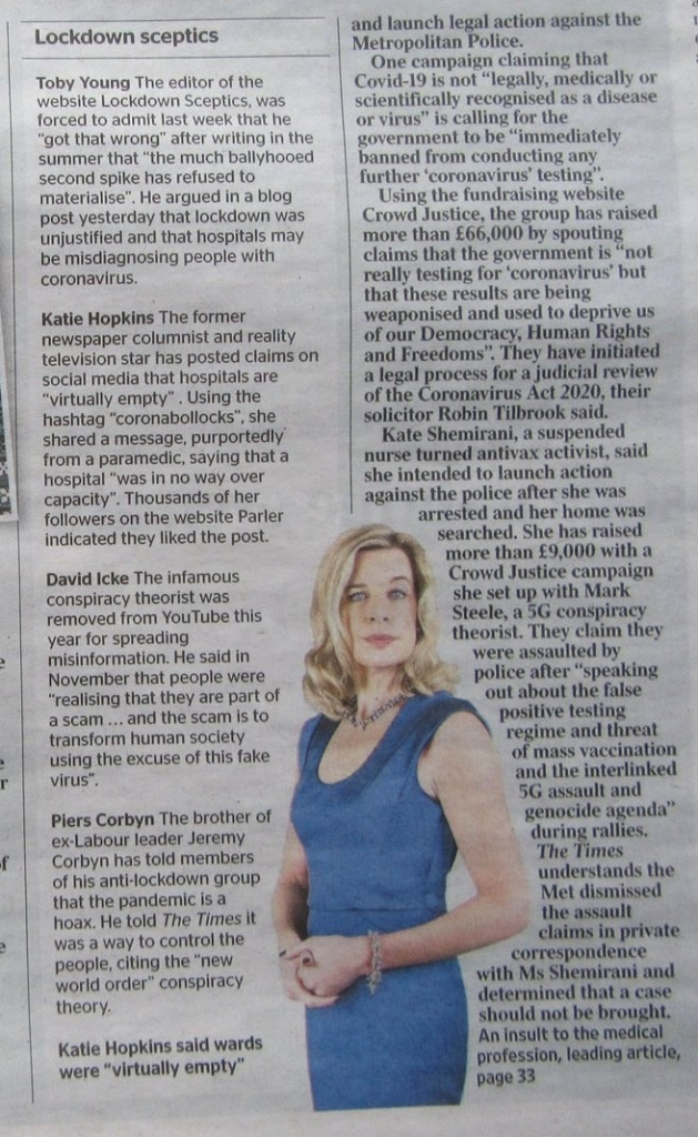 The Times, 9/1/20, about covid deniers