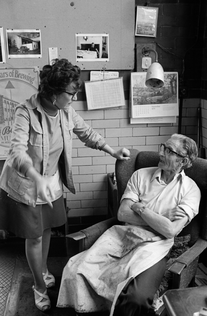 Mary Cawdrey having a go at Jim Pollard, the weaving manager at Bancroft. Mary was a formidable lady!