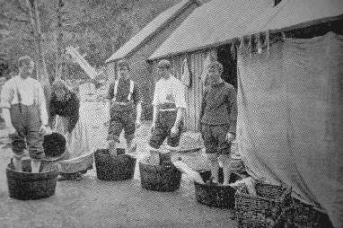 Fulling cloth by treading