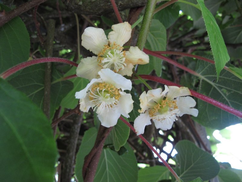 Kiwi vine flowers growing in Cornwall, 2021
