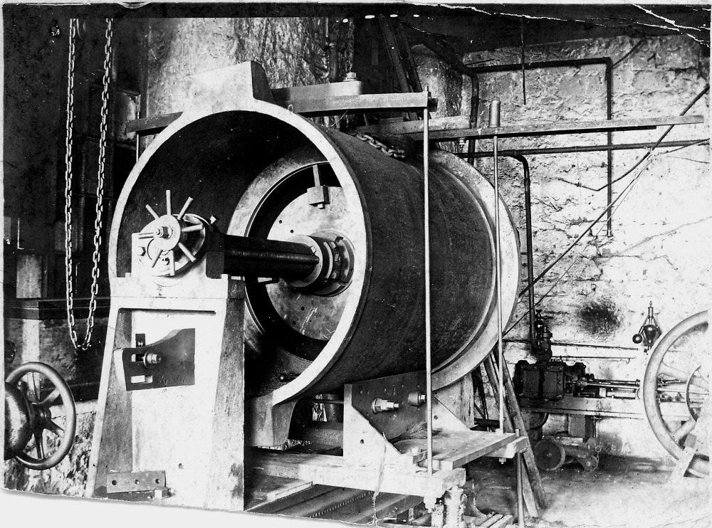 Boring out an air pump prior to fitting a liner at H Brown and Sons, Wellhouse works. Pre 1929.