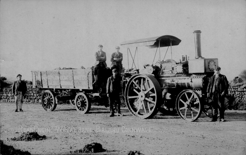 Traction engine 'Falcon' hauling for Wheal Jane Baldhu mine in Cornwall.