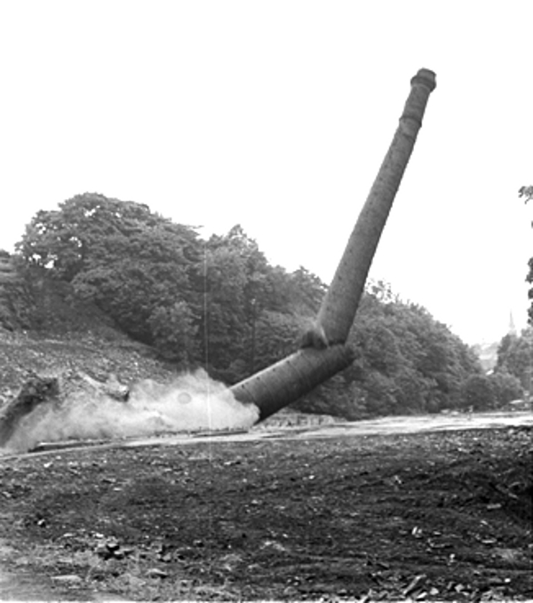 Sunnybank chimney at Haslingden. Dropped by Peter Tatham in 1977.
