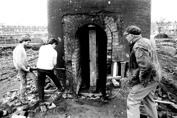 Ronnie Goggins supervising the felling of Jubilee chimney at Padiham.