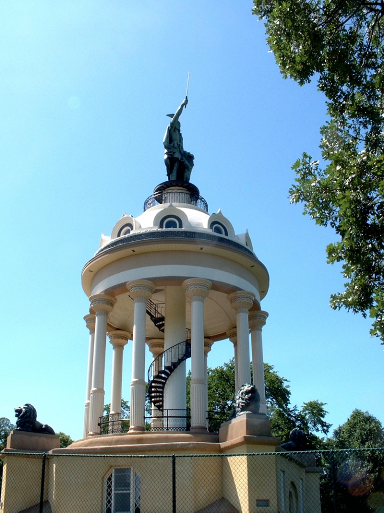 The replica statue of Arminius the victor at Teutoberg in 09BC at New Ulm in the US