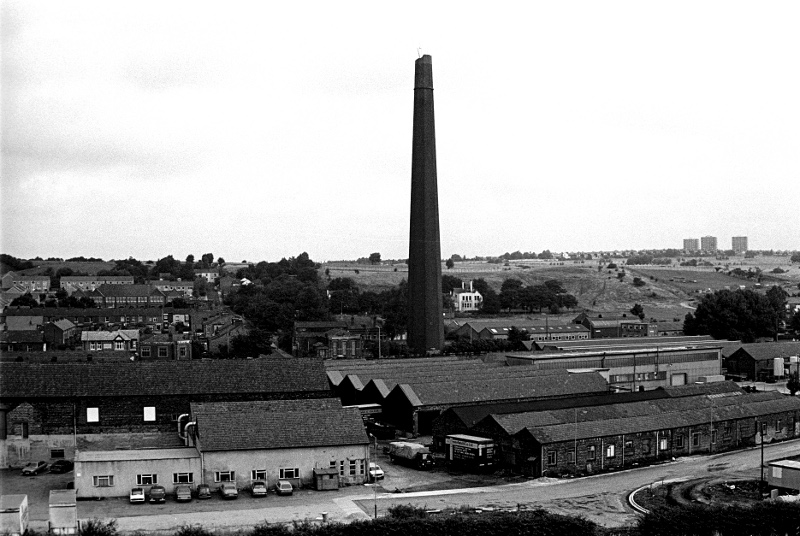 Swabs chimney at Middleton under demolition in 1979. At 343 feet it was reputed to be the tallest brick chimney in Europe.