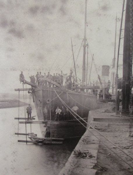 Hayle docks - scaffolding on ship's hull