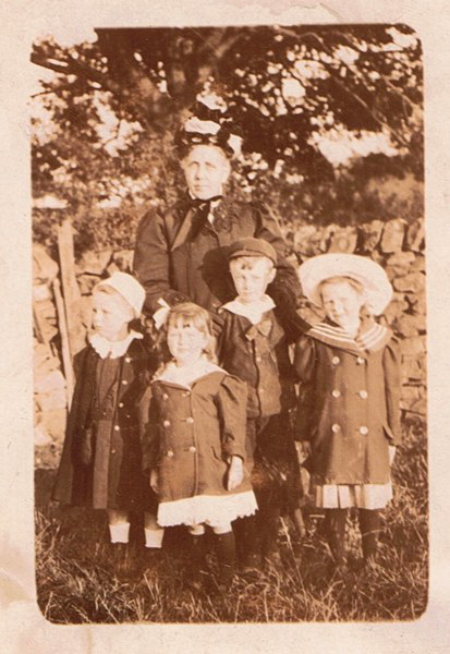 Elizabeth Bracewell with 4 of her grandchildren, l to r, Edith Ellen daughter of Edith Metcalf Bracewell. Mary Forrest, Billy Forrest and Hannah Forrest, all children of Canon William Bracewell who married Hannah Forrest, sister of Sir William Forrest