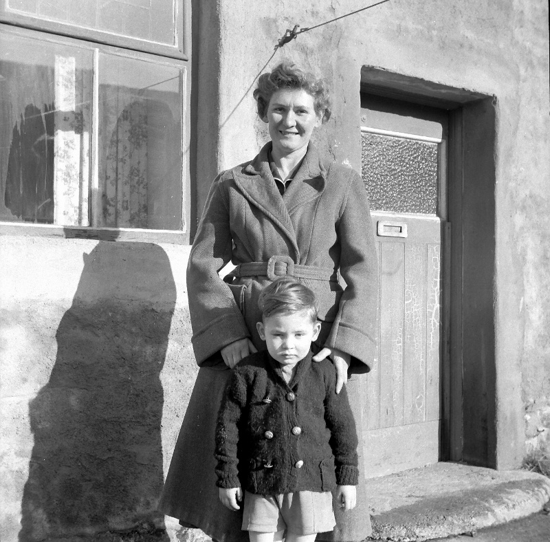 Mrs Metcalfe and son at Brown Hill in 1957