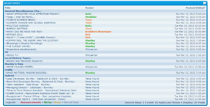 Screen shot of Recent Topics from Portal Page