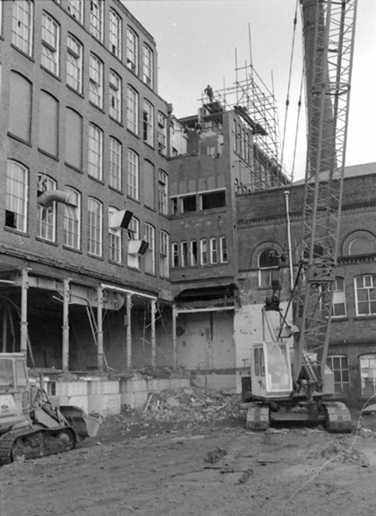 Ellenroad demolition 1985. Cutting out the toilet block at the back.