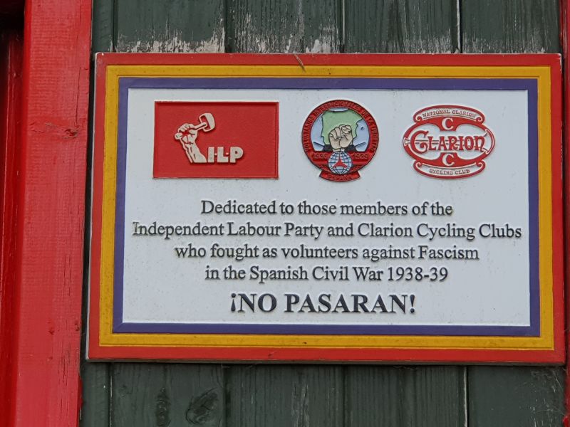 Plaque to remember the ILP and Clarion Cycling Club members who fought in the Spanish Civil War