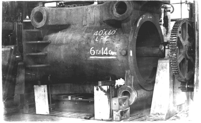 Low pressure cylinder for Plumb Street Mill engine being bored at Wellhouse Shop. 1958.