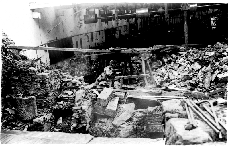 The destruction to the weaving shed at Clough Mill caused by the flood of 1932
