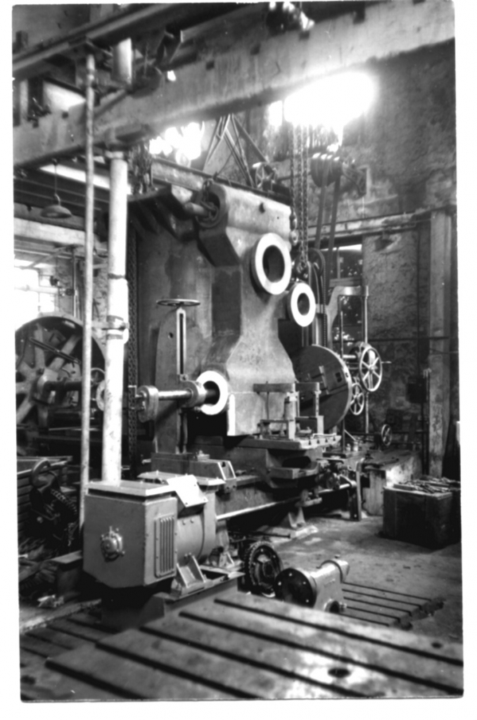 A cylinder set up on the boring machine at Wellhouse shop ready for boring the valve ports.