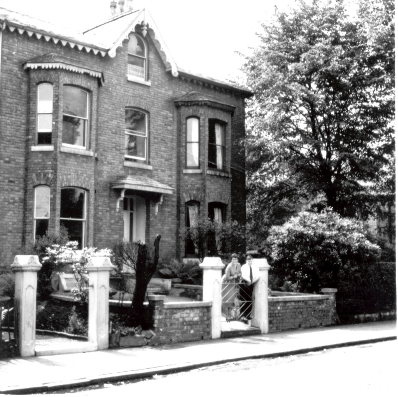 6 Napier Road Heaton Moor. My sister Dorothy and brother Leslie leaning on the gate.
