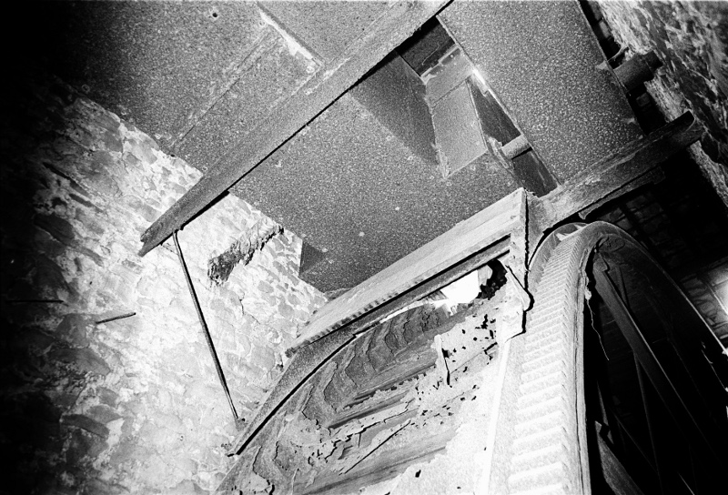 The wheel just under the penstock housing at the top.