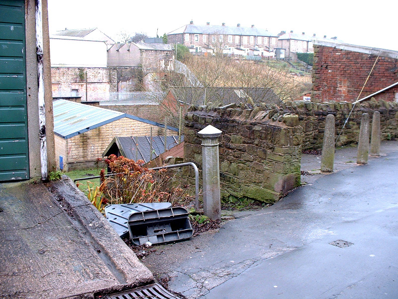 This iron pillar used to stand on the corner of the old shop opposite the Greenstreet Club in Commercial Street according to Harold Duxbury. 82/HD/01. Where the wall is stood the original premises of William Holdsworth. It was burned out in the late 70s.