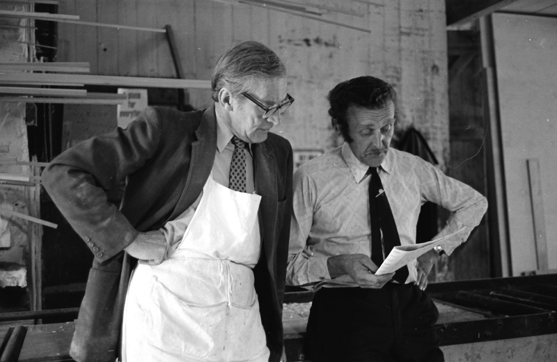 Arthur Duxbury on the right in the shop in 1976