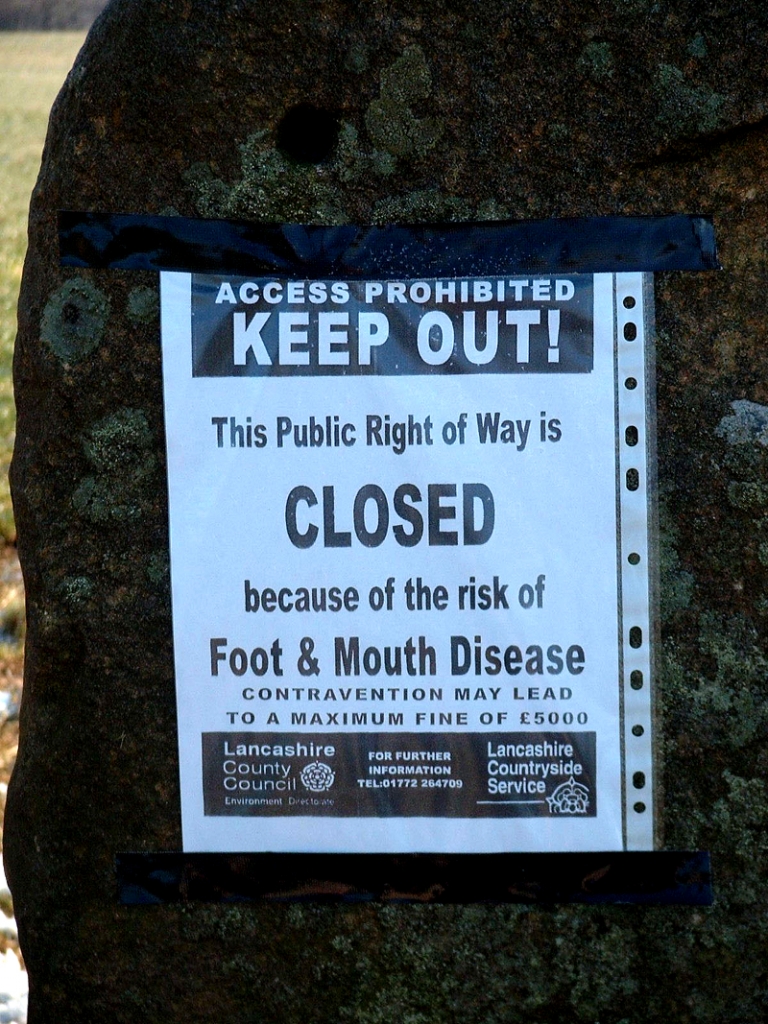 Foot and Mouth notice on Letcliffe in March 2001.