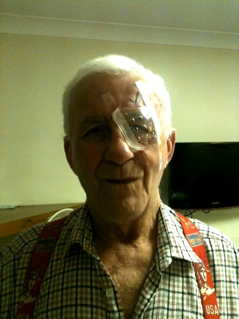 SG immediately after eye op (eating a fat rascal!)
