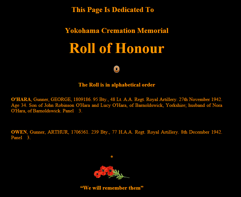 From the WW2 Roll of Honour at Yokohama Cremation Memorial.