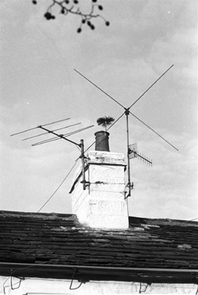 Sweeping the chimney in 1977 at Hey Farm.